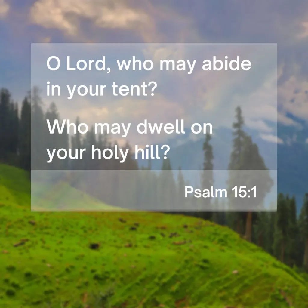 Leader: O LORD, who may dwell in your tent? Who may abide on your holy hill? People: Those who walk with integrity, and do what is right, and speak the truth from the heart. Leader: Who do not slander with their tongue, nor do evil to their neighbors, People: Who do not take up a reproach against a friend, but honor those who fear the LORD. Leader: Who refuse the ways of the wicked, and will not profit from injustice, People: Who keep their word even when it costs them, and do not change their promise. Leader: Who do not lend in order to exploit, nor accept a bribe against the innocent, People: Who choose faithfulness over advantage, and righteousness over gain. Leader: O LORD, who may stand in your presence? People: Those who live justly before you, who love truth, and walk humbly in your ways. All: Such as these shall never be moved. Thanks be to God. Amen.